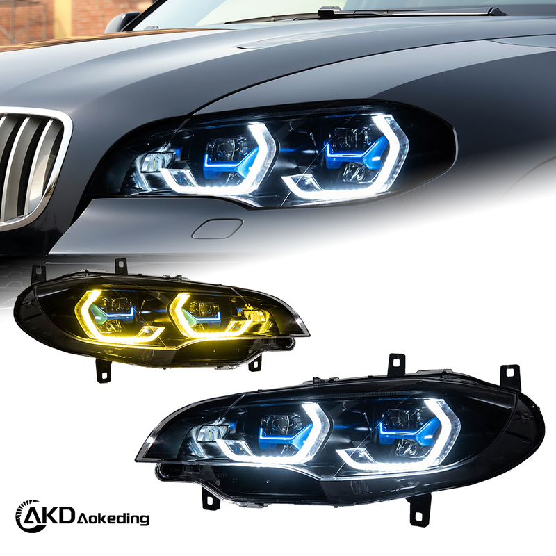 AKD Headlight Assembly Upgrade for 2007-2013 BMW X5 E70 Models: LED Laser Sequential Turn Signals, Daytime Running Lights, And Bi-xenon Projector Lenses.