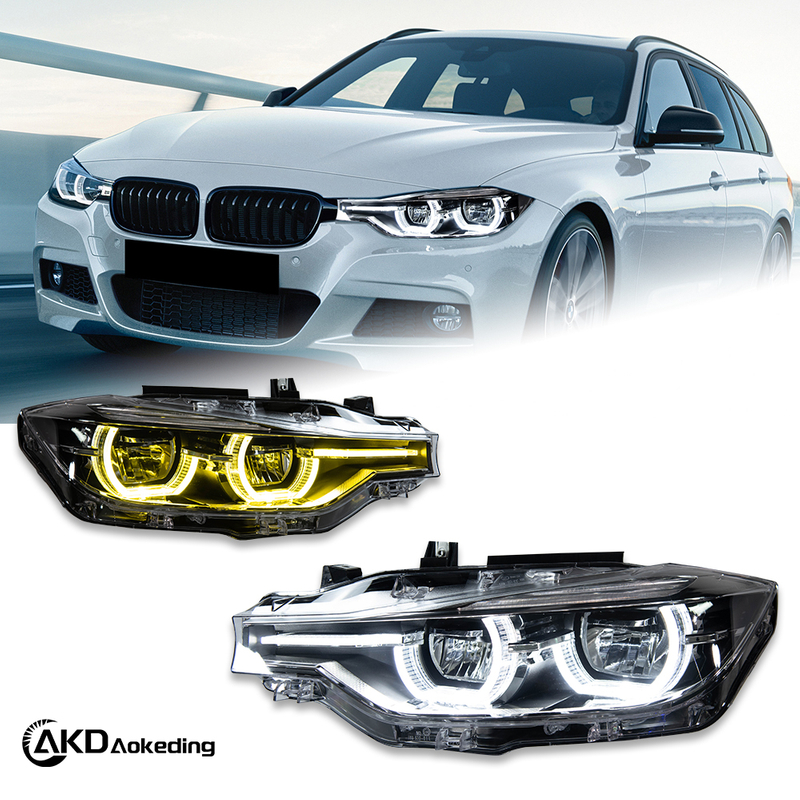 AKD Headlight Assembly Upgrade for 2012-2015 BMW 3 Series F30 Models: LED Laser Sequential Turn Signals, Daytime Running Lights, And Bi-xenon Projector Lenses.